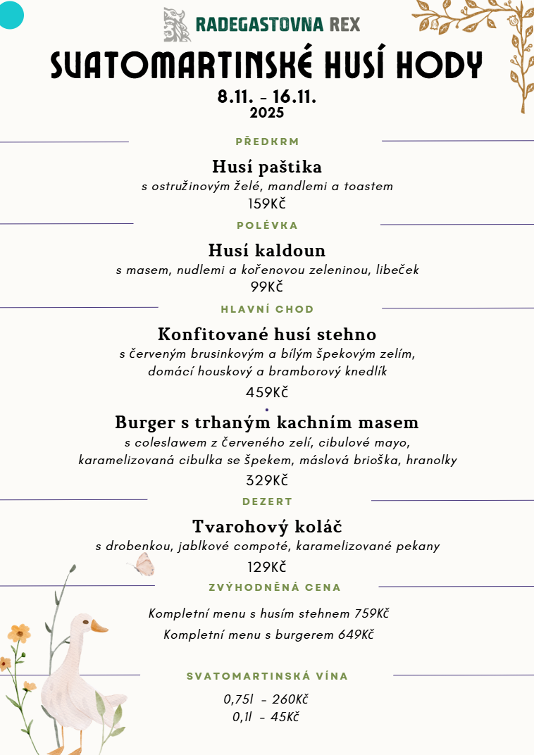Srdečně vás zveme na Svatomartinské husí hody, které se budou konat ve dnech od 8. listopadu do 16. listopadu 2025🍂